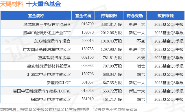 重仓天赐材料的前十大公募基金请见下表: