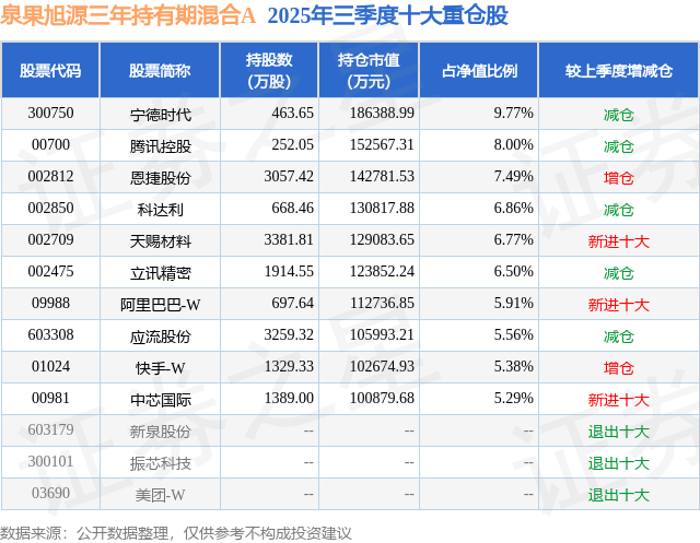根据2025基金Q3季报公募基金重仓股数据,重仓该股的公募基金共77家,其中持有数量最多的公募基金为泉果基金的泉果旭源三年持有期混合A。泉果旭源三年持有期混合A目前规模为163.29亿元,最新净值1.0596(12月22日),较上一交易日上涨1.74%,近一年上涨36.79%。该公募基金现任基金经理为赵诣。