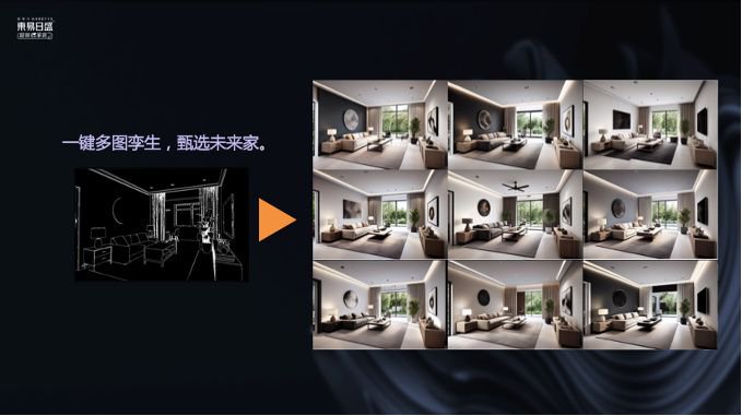 东易日盛,把成立26年以来积累的海量数据,通过AIGC赋能,可以实现1小时生成上百张符合灵感需求的图片。还可以根据用户提供的关键词需求、进行空间规划、家居搭配、饰品挑选等来完成方案的自动生成,量身定制的个性化服务,减轻人工劳动和提高效率。
