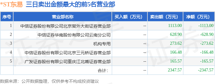 10月9日*ST东易(002713)龙虎榜数据:机构净卖出273.62万元(3日)