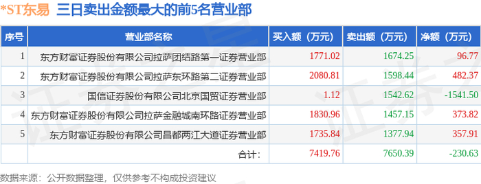 证券之星消息,沪深交易所2025年10月31日公布的交易公开信息显示,*ST东易(002713)因连续三个交易日内,涨幅偏离值累计达到12%的ST证券、*ST证券和未完成股改证券登上龙虎榜。此次是近5个交易日内第2次上榜。