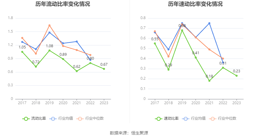 2023年,公司流动比率为0.67,速动比率为0.23。