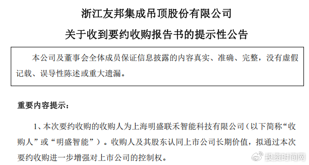 友邦吊顶收到要约收购报告书提示性公告