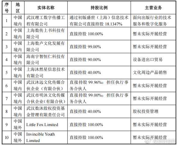 施其明则自2015年至今,担任武汉理工数字传播工程有限公司(下称理工数传)CEO,且他通过初版盛世(上海)信息技术有限公司直接持有理工数传18%以上股份。作为出版行业的“独角兽”企业,理工数传主营业务是面向出版行业的技术服务和数字化服务。