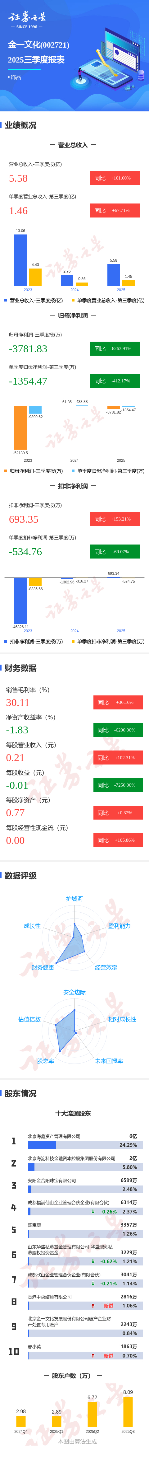 图解金一文化三季报:第三季度单季净利润同比下降412.17%
