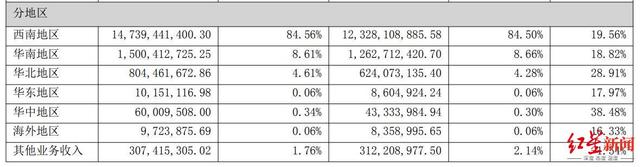 但一心堂却偏安一隅,走不出西南。一心堂发迹于云南,2022年末,公司在云南有5224家门店,占据门店总数的56.75%。另据其在投资者调研会议上透露,云南的收入主要由母公司产生,2022年母公司实现收入97.58亿元,占比55.98%。当期西南地区贡献了147.39亿元,是总收入的84.56%。
