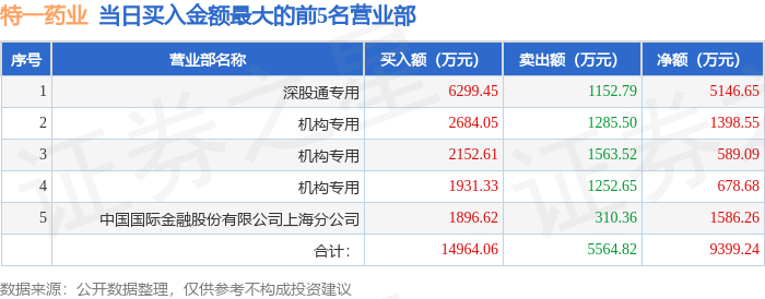 10月31日特一药业(002728)龙虎榜数据:机构净买入2674.21万元,北向资金净买入5146.65万元