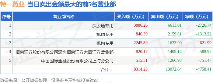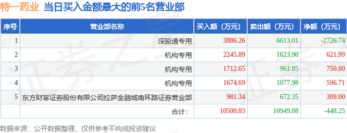 11月3日特一药业(002728)龙虎榜数据:机构净买入656.28万元,北向资金净卖出2726.74万元