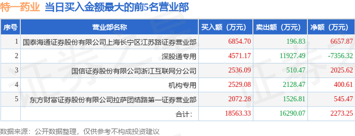 11月12日特一药业(002728)龙虎榜数据:游资章盟主上榜