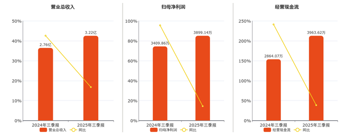 公司营业总收入为3.22亿元,在已披露的同业公司中排名第29。归母净利润为3899.14万元,在已披露的同业公司中排名第22。经营活动现金净流入为3963.62万元,在已披露的同业公司中排名第17。