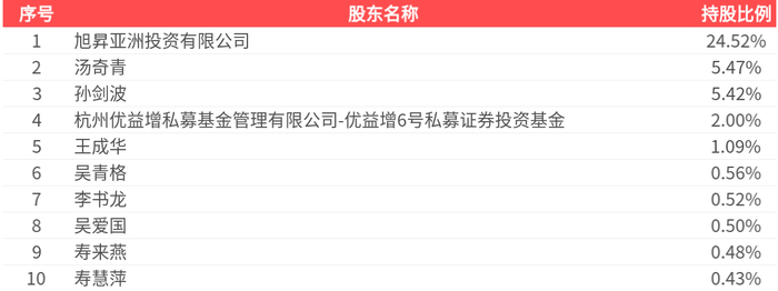 公司股东户数为2.20万户,前十大股东持股数量为7499.88万股,占总股本比例为40.99%,前十大股东持股情况如下: