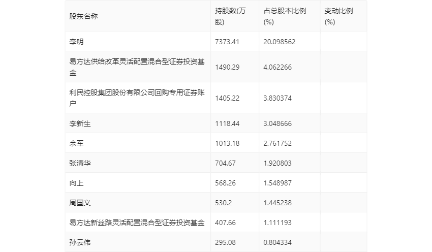 半年报显示,2024年上半年末的公司十大流通股东中,新进股东为利民控股集团股份有限公司回购专用证券账户、余军、向上、孙云伟,取代了一季度末的马长贵、鲍小娟、孙涛、许春芳。在具体持股比例上,易方达供给改革灵活配置混合型证券投资基金持股有所上升,李明、李新生、张清华、周国义、易方达新丝路灵活配置混合型证券投资基金持股有所下降。