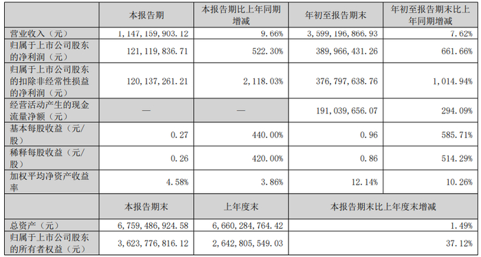 报告显示,利民股份公司前三季度营业收入为35.99亿元,同比增长7.62%;归母净利润为3.90亿元,同比增长661.66%;扣非归母净利润为3.77亿元,同比增长1014.94%;基本每股收益0.27元。