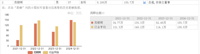 据东方财富网数据,利民股份总裁范朝辉2024年所获薪酬为150.7万元,相较上年薪酬82.49万元涨薪82.69%。