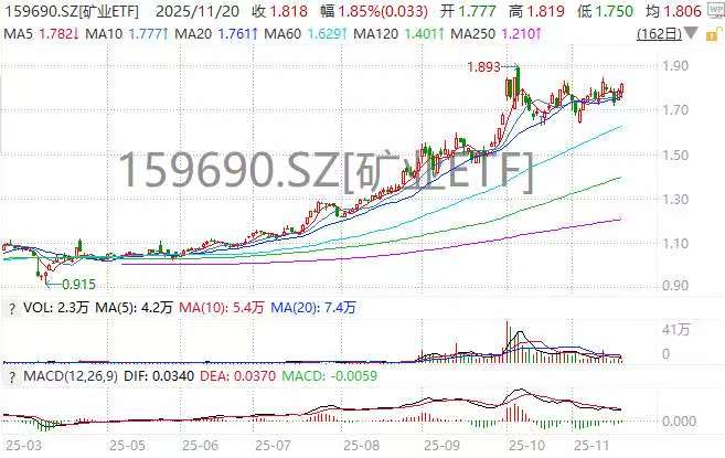 11月20日,矿业板块延续强势表现。截至上午10时,矿业ETF(159690)放量上涨1.46%,成分股盛新锂能、中矿资源、华锡有色、永兴材料涨幅居前。该ETF今年以来累计涨幅已接近90%,成为年内表现最出色的行业ETF之一。
