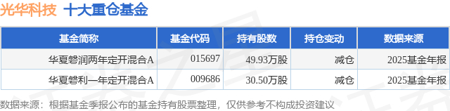 重仓光华科技的公募基金请见下表: