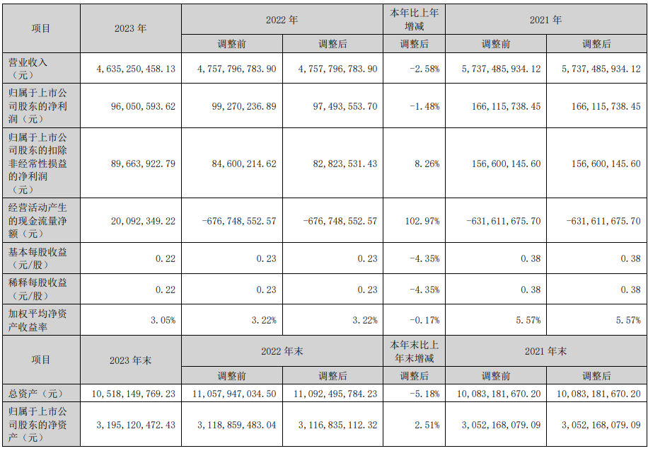 数据显示,2023年公司加权平均净资产收益率为3.05%,较上年同期下降0.17个百分点;公司2023年投入资本回报率为3.63%,较上年同期下降0.36个百分点。