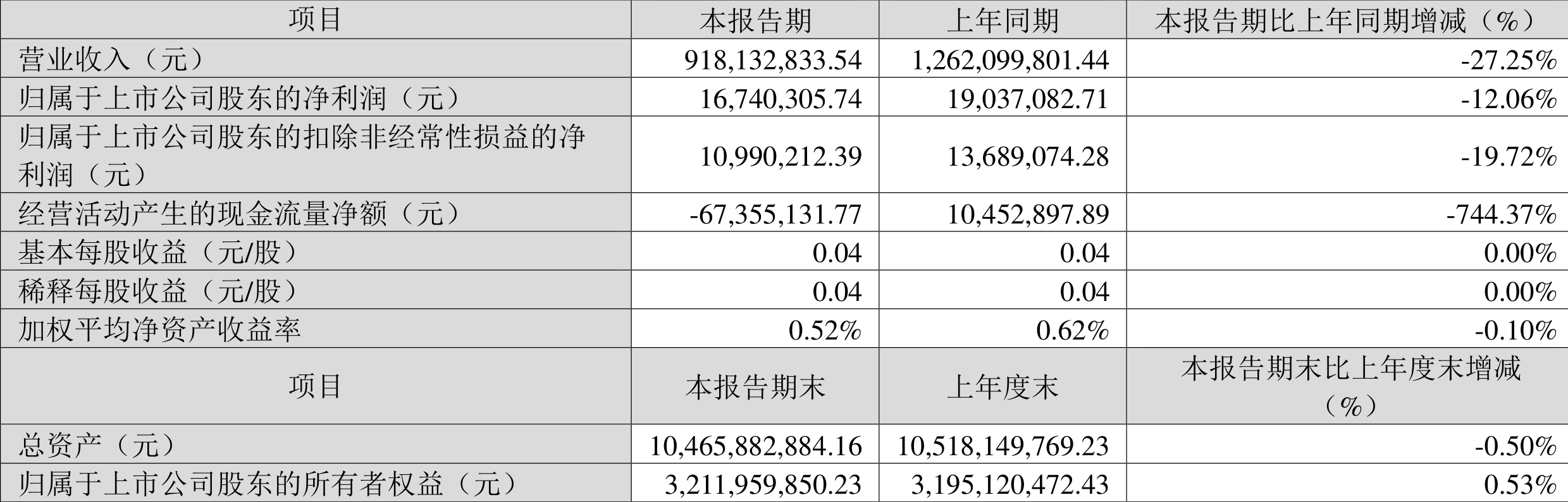 数据显示,2024年第一季度公司加权平均净资产收益率为0.52%,较上年同期下降0.10个百分点;公司2024年第一季度投入资本回报率为0.67%,较上年同期下降0.13个百分点。