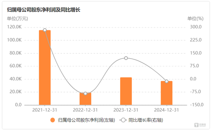 公开数据显示,公司2021年~2024年虽然营收较为平稳,整体波动大不,但是净利润的表现却颇为挣扎,从2021年10.53亿元的高点骤降至2022年的1.55亿元,2023年净利润暴涨127.71%后,2024年净利润再次下滑仅为3.11亿元。