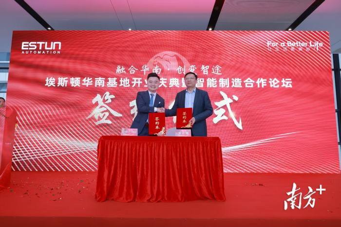 开业仪式上,埃斯顿自动化还与弘亚集团旗下广州赛志系统科技有限公司、长园集团(珠海市运泰利自动化设备有限公司)、科达制造股份有限公司、广州三拓智能装备有限公司等多家企业签署战略合作协议,共同推动智能制造在华南地区的深度融合与落地。