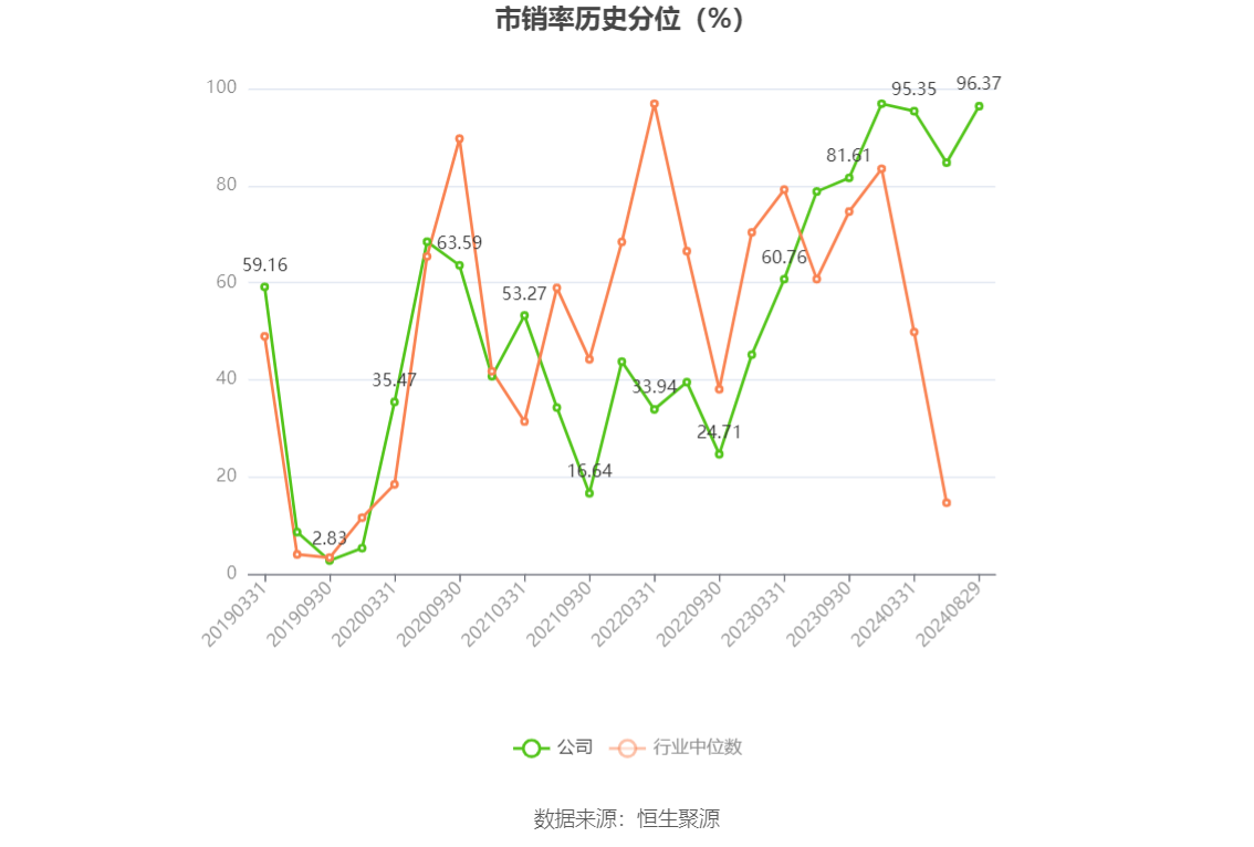在偿债能力方面,公司2024年上半年末资产负债率为19.22%,相比上年末上升4.66个百分点;有息资产负债率为1.94%,相比上年末下降1.38个百分点。