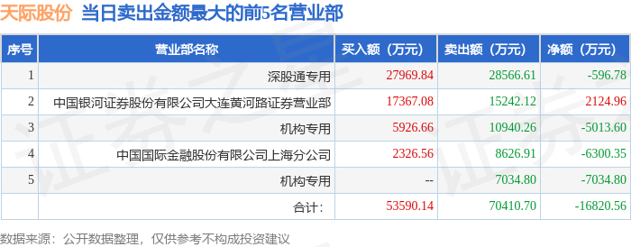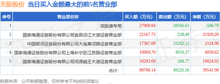 1月5日天际股份(002759)龙虎榜数据:机构净卖出1.2亿元,北向资金净卖出596.78万元