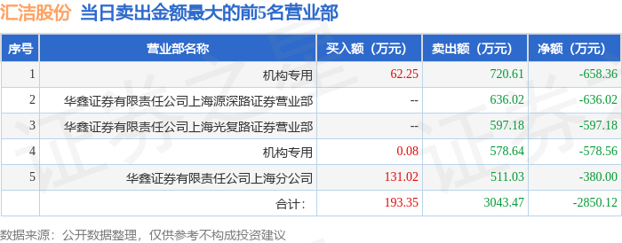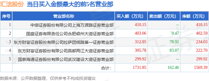 12月30日汇洁股份(002763)龙虎榜数据:机构净卖出1236.92万元