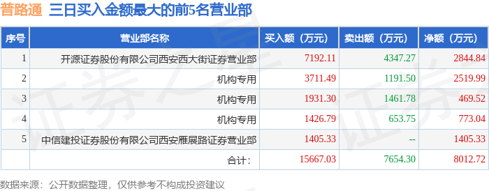 1月13日普路通(002769)龙虎榜数据:机构净买入3762.55万元(3日)