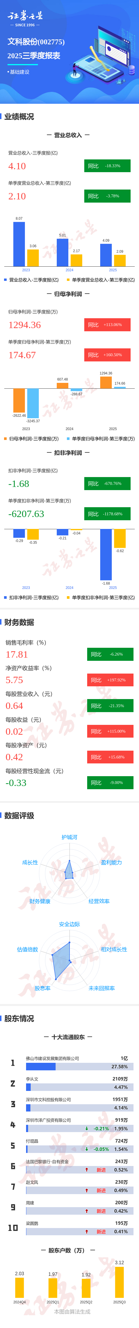 图解文科股份三季报:第三季度单季净利润同比增长160.51%