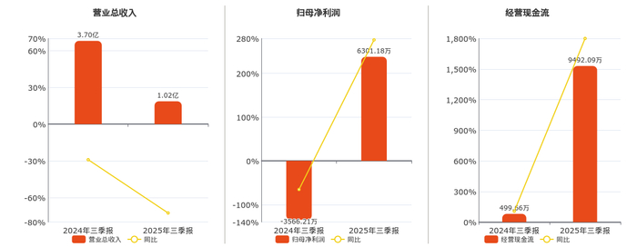 公司营业总收入为1.02亿元。归母净利润为6301.18万元,较去年同报告期归母净利润增加9867.39万元。经营活动现金净流入为9492.09万元,在已披露的同业公司中排名第29,较去年同报告期经营活动现金净流入增加8992.43万元,实现2年连续上涨,同比较去年同期上涨1799.71%。