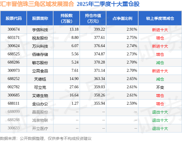 汇丰晋信珠三角区域发展混合的前十大重仓股如下: