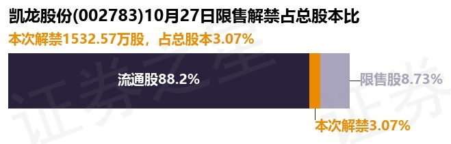 凯龙股份(002783)1532.57万股限售股将于10月27日解禁,占总股本3.07%