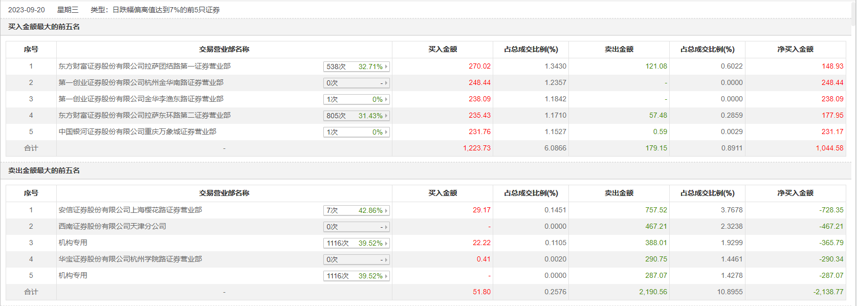 9月20日,银宝山新今日跌停,龙虎榜数据显示,上榜营业部席位全天成交3645.25万元,占当日总成交金额比例为18.13%。其中,买入金额为1275.53万元,卖出金额为2369.71万元,合计净卖出1094.18万元。