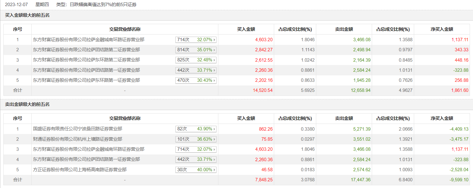 具体来看,知名游资现身龙虎榜,宁波桑田路(国盛证券宁波桑田路证券营业部)、财通证券杭州上塘路证券营业部分别卖出5271.39万元、3551.02万元;东方财富证券拉萨金融城南环路证券营业部、东方财富证券拉萨团结路第二证券营业部分别买入4603.20万元、2842.27万元。