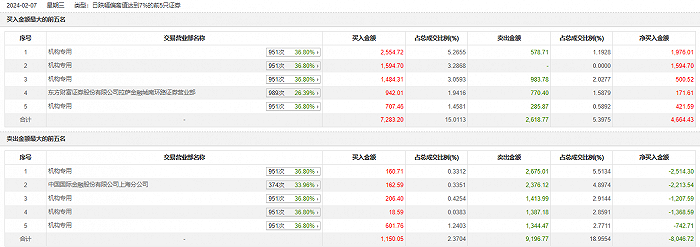银宝山新2月7日跌停,全天换手率达11.39%,振幅达11.37%。龙虎榜数据显示,营业部席位合计净卖出3382.29万元。其中,机构买入7328.65万元,卖出8669.02万元,合计净卖出1340.36万元。此外,中国国际金融上海分公司、东方财富证券拉萨金融城南环路证券营业部分别卖出2376.12万元、770.40万元;东方财富证券拉萨金融城南环路证券营业部、中国国际金融上海分公司分别买入942.01万元、162.59万元。