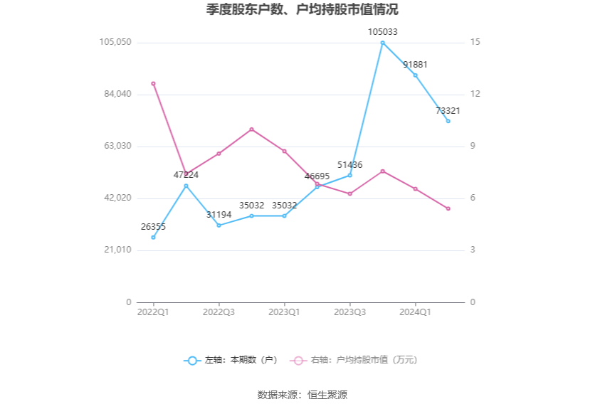 筹码集中度方面,截至2024年上半年末,公司股东总户数为7.33万户,较一季度末下降了1.86万户,降幅20.20%;户均持股市值由一季度末的6.56万元下降至5.42万元,降幅为17.38%。