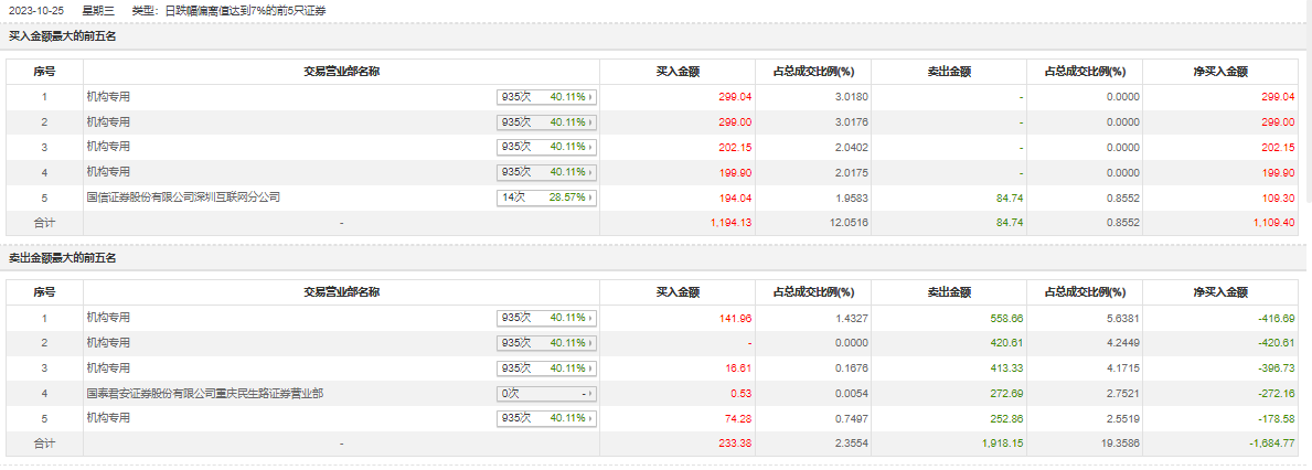 10月25日,瑞尔特今日跌9.94%,全天换手率达3.54%,振幅达10.11%。龙虎榜数据显示,营业部席位合计净卖出575.37万元。其中,机构买入1232.94万元,卖出1645.46万元,合计净卖出412.52万元。此外,国泰君安证券重庆民生路证券营业部、国信证券深圳互联网分公司分别卖出272.69万元、84.74万元;国信证券深圳互联网分公司、国泰君安证券重庆民生路证券营业部分别买入194.04万元、5340元。