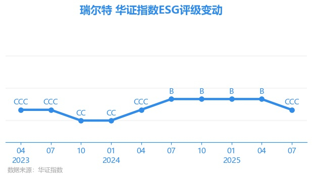 日前,华证指数公布了新一期(2025年7月31日)的ESG评级结果,瑞尔特(002790.SZ)获得CCC评级(华证指数评级为C起至AAA九档,C为最低档,AAA为其最高一级评级/AA为其第二档),上一期(2025年4月30日)ESG评级为B。本期ESG评级在147家家庭耐用消费品行业A股上市公司中排名第72(上一期排名第68)。