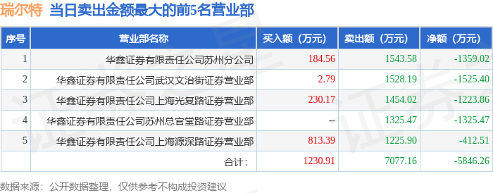 证券之星消息,沪深交易所2025年11月4日公布的交易公开信息显示,瑞尔特(002790)因日跌幅偏离值达到7%的前5只证券登上龙虎榜。此次是近5个交易日内第3次上榜。