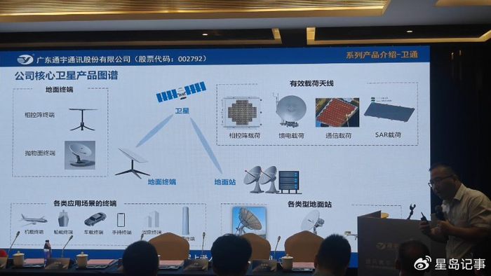《星岛》记者从发布会现场了解到,通宇通讯目前已切入 “GW 星座”、“千帆星座”、“鸿鹄星座” 三大商用卫星互联网项目的供应链,为其提供卫星上的馈电载荷天线,以及地面站、相控阵终端等地面设施。