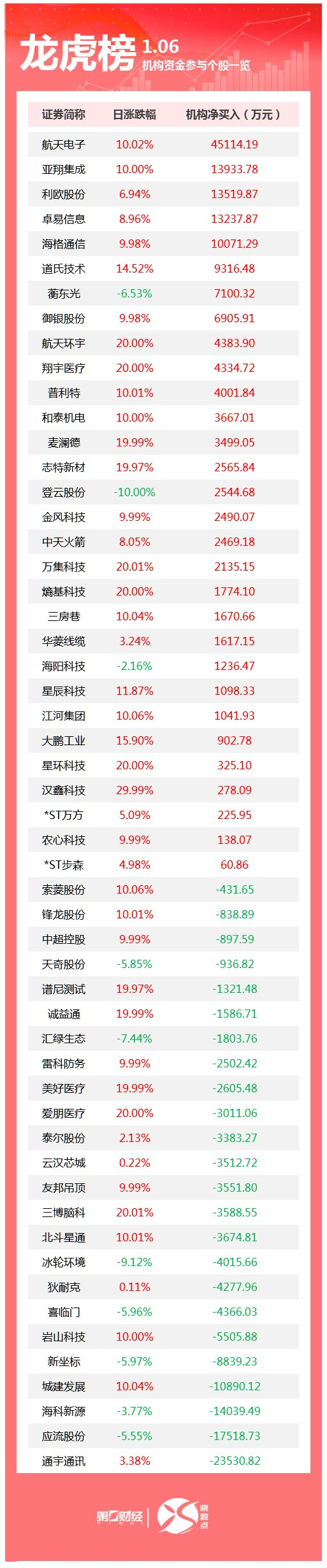 龙虎榜丨机构今日买入这30股,卖出通宇通讯2.35亿元