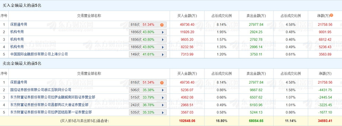 龙虎榜丨通宇通讯跌8.75%,深股通净买入2.18亿元,三机构净买入2.11亿元