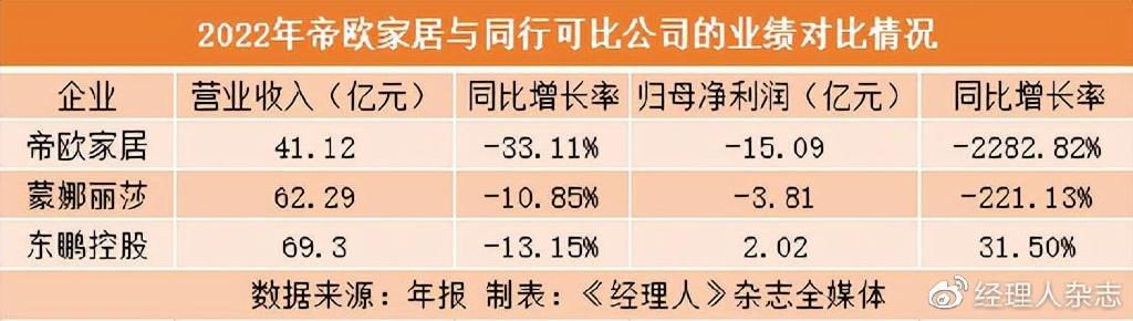 从2018年收购欧神诺后,帝欧家居的营收规模实现了跨越式增长,不过好景不长,仅短短5年,公司便从盈利转向亏损,亏损金额甚至达到了15.09亿元。受地产行业低迷影响,建筑陶瓷行业也深受重创。不过,对比蒙娜丽莎、东鹏控股同行可比公司情况,帝欧家居的营收净利都是下滑最为严重的。