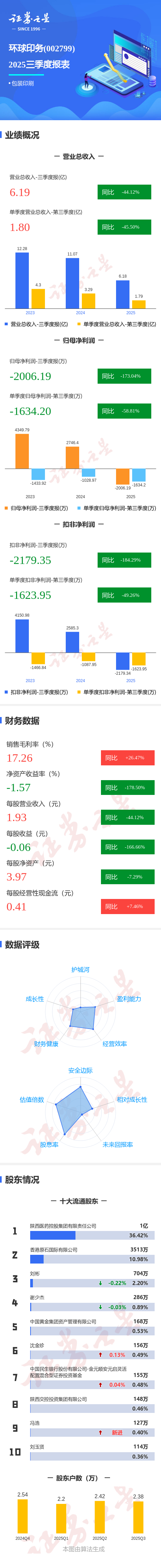 图解环球印务三季报:第三季度单季净利润同比下降58.82%