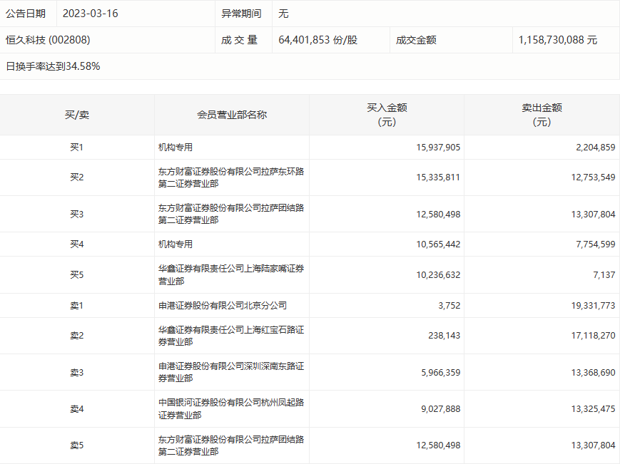 3月16日,恒久科技今日跌4.38%,龙虎榜数据显示,上榜营业部席位全天成交1.79亿元,占当日总成交金额比例为15.45%。其中,买入金额为7989.24万元,卖出金额为9917.22万元,合计净卖出1927.97万元。