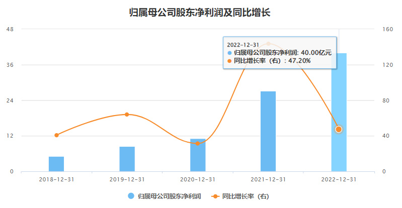 也是“打铁自身硬”,资本运作后的恩捷股份业绩开始持续走高,2018年-2022年,公司营收从24.57亿增长至125.91亿,平均年增长可以达到50%以上,净利润方面,5年归母净利润从5.18亿增长至40亿,平均年增长超过66%。