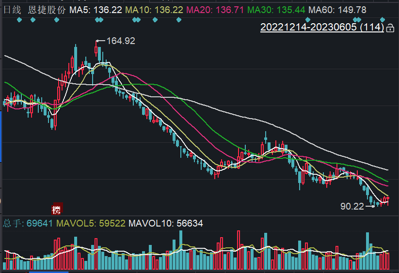 数据显示,截至6月5日收盘,恩捷股份股价为94.18元/股。