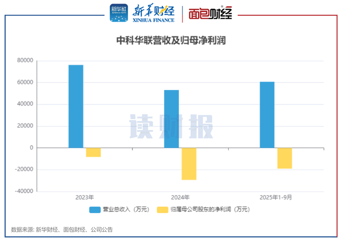 值得注意的是,2023年以来该公司处于持续亏损状态。2025年前三季度,中科华联实现营收约6.07亿元,归母净利润亏损约1.9亿元。