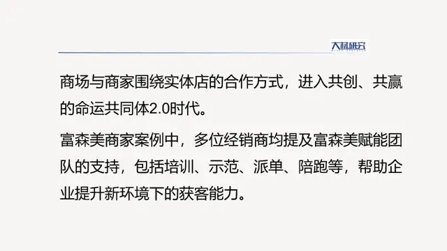 上述富森美商家案例中,多位经销商均提及富森美赋能团队的支持,包括培训、示范、派单、陪跑等,帮助企业有效解决经营难点。