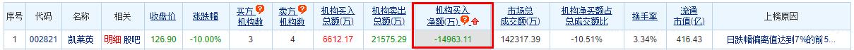 凯莱英跌停 机构净卖出1.5亿元